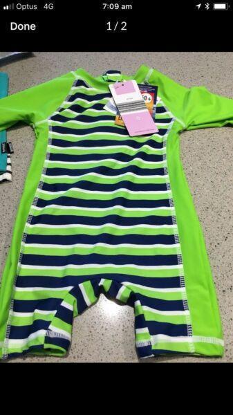 4 long wondersuits and 2 short wondersuits, all size 0. All in good condition, except the blue stripe one has a small hole in the crotch.