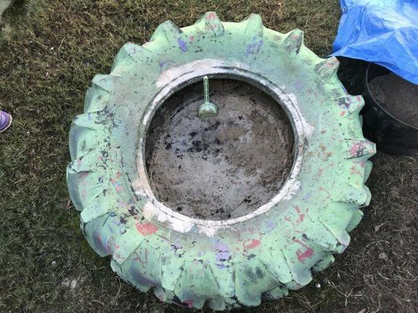 Tyre sandpit. Used trucker tyre. And sand not included. Approximately 1.18 m wide by 30cm height. (14.9-24 on 13" rim)