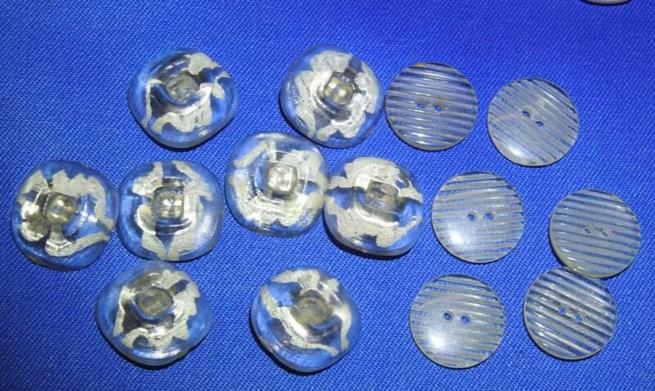 VINTAGE 14 BUTTONS CLEAR WITH WHITE 2CM W , CLEAR WITH RIDGES 19MM 0
