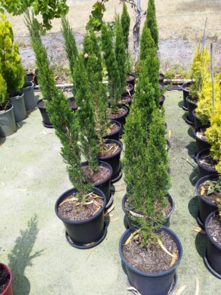 GREEN AND BLUE PENCIL PINES TO 6 METRES. ITALIAN CYPRESS