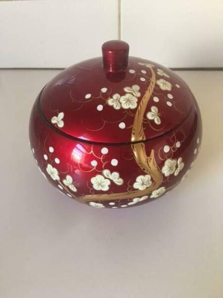 Red Lacquerware Bowl with Lid. One chip on inside rim. Not noticable with lid on.