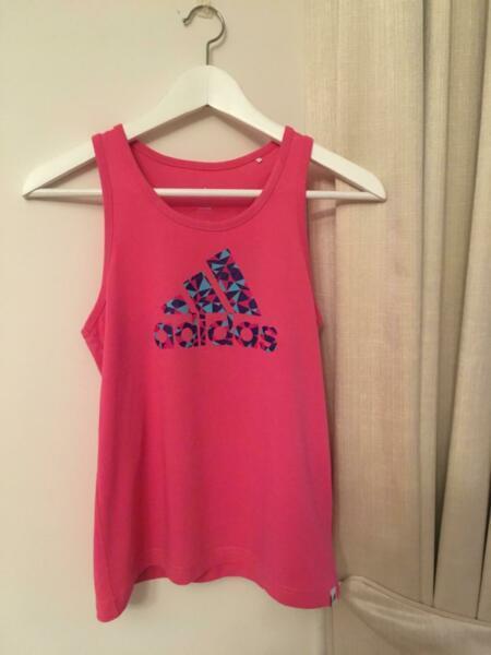 Girls peach coloured short sleeve top with adidas logo in the middle, age 9-10