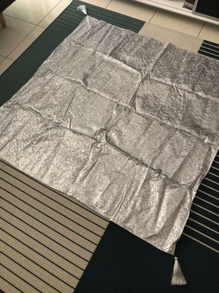 Silver embossed pattern square Christmas tablecloth with tassels 133cmsx133cms
