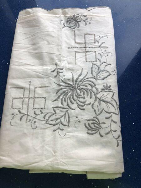 Brand new , 170x260cm, ivory , with taupe embroidery & scalloped edge. New $180, now only $40!