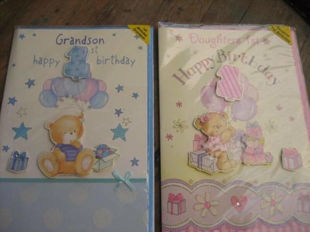 new large 1st birthday cards Daughters & Grandson $4 each 0