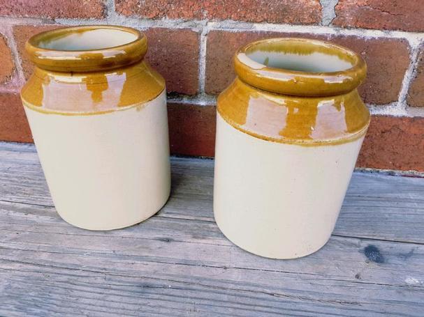 2 x vintage brown stoneware xaddys 0