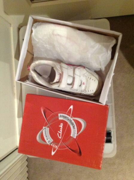 Girls Clarks White/Fuchsia Runner Size 4E 0
