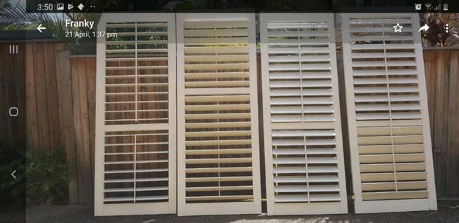 RRP $3500. Measurements 235.5 x 93 x 3.5cm each. As New Condition. Make Us an offer Beautiful WOODEN PLANTATION SHUTTERS x 2 Sets Excellent condition Cream