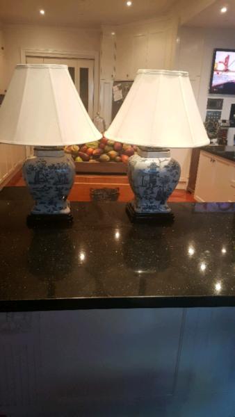 Stunning asian style lamps. Paid $450 each. 65 cm high x 47 cm wide lamps. Bades are 23 cm wide.