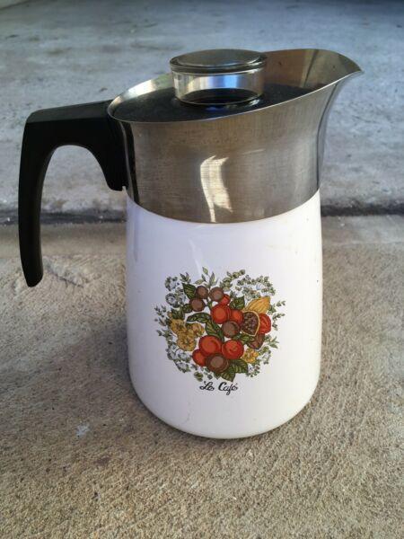 Vintage Corningware Spice of Life Le Cafe coffee percolator. 6 cup capacity, 22cm tall. Circa 1970's.