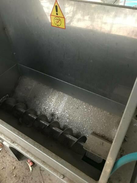 A Stainless steel grape crusher destemer used for wine making. The hopper holds approx 200 litres of grape bunches taking around 2 minutes to process.