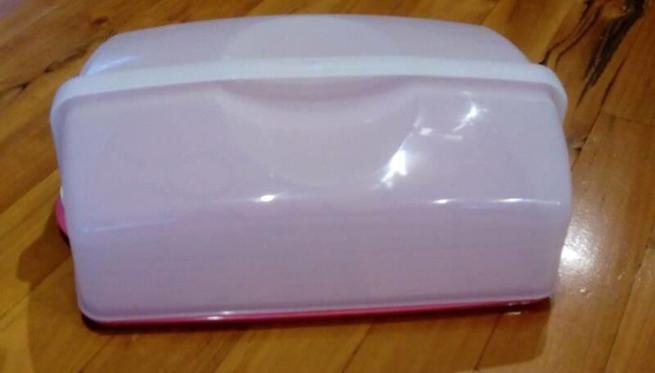 Tupperware cake carrier.