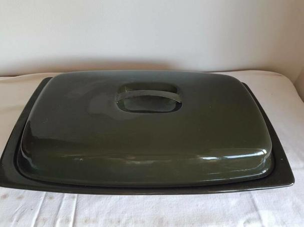 Vintage Green Enamelware Graniteware Cake/Roast/Baking Pan HTF Coloration w/Lid