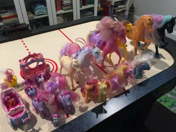 6 Larger plastic horses, some with saddles. Goes with Barbie's. Hours of fun