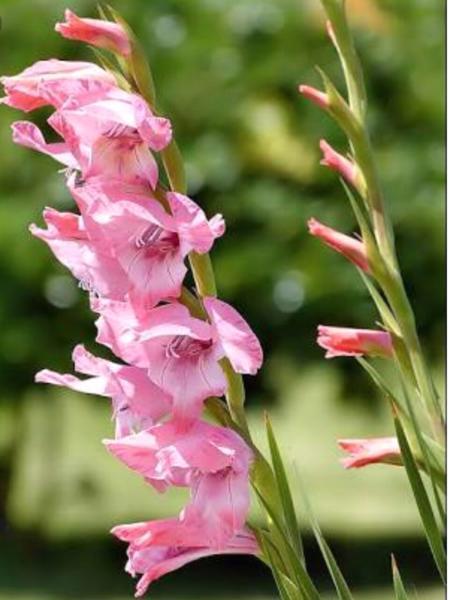 Pink Gladiolus bulbs. In full leaf. is in bloom this season, so enjoy it's full array at your place.