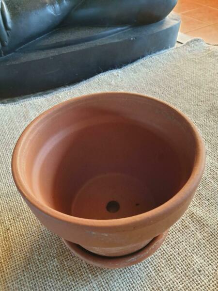 10 Terracota Pots with Saucers in good condition no chips no cracks, 160mm in Diameter 110mm deep. $2.00 for each pot with saucer.