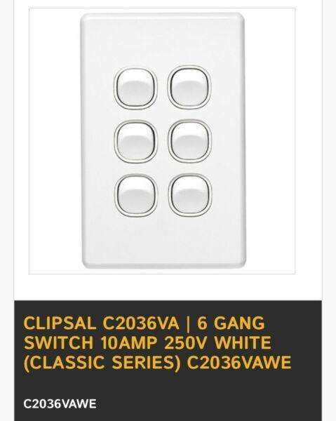 Clipsal C2036VA | 6 Gang Switch 10Amp 250v White