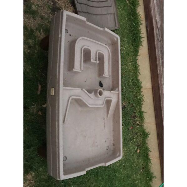 Old school trampoline without the padding on the sides, probably more suitable for older kids.
