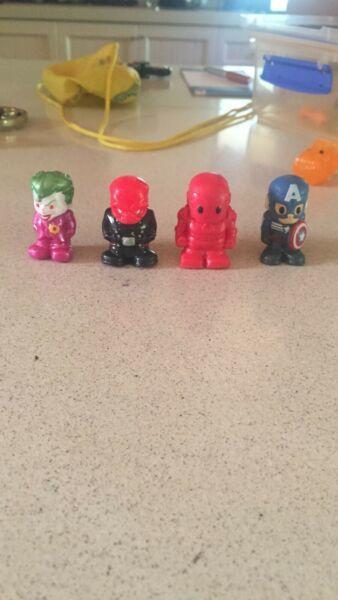 One DC ooshie the joker (limited edition),one captain America, one red skull and 19?? Iron man.