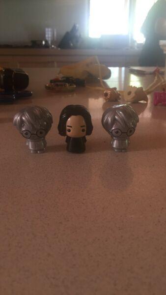 3 Harry Potter ooshies. Two silver Harry potters and one snape