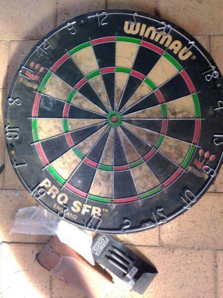 Dart board with darts. A little stained but if your happy as is or happy to repaint?