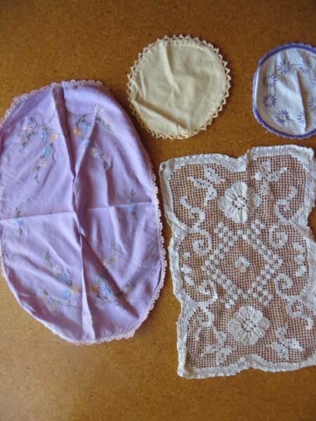 DOILIES X 4 ASSORTED LARGE 35CM LONG ,SMALL 15CH DIA. $10 THE LOT