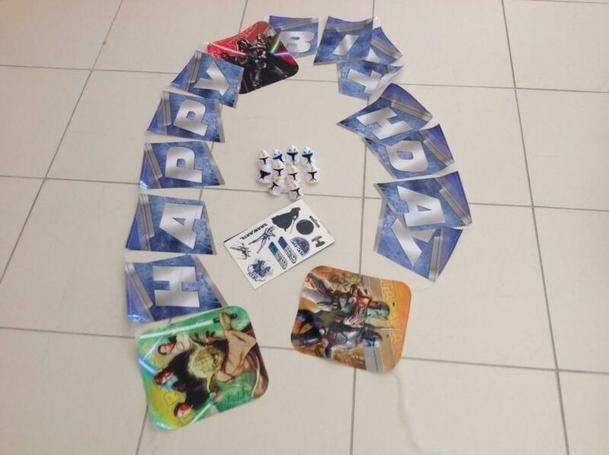 Starwars happy birthday banner, cupcake rings, tattoos 0