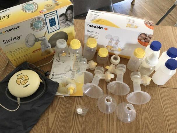 Medela pump with all attachments and some spare parts. Plus lactina double pump.