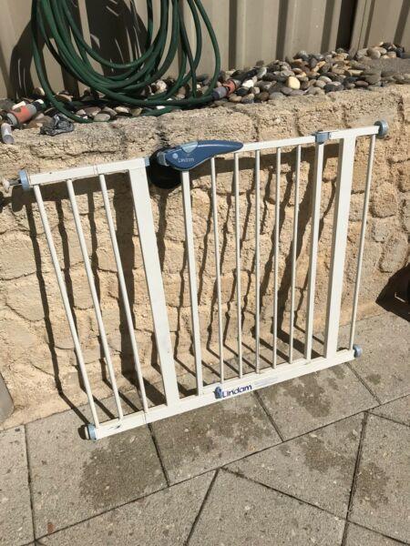 Lyndam baby gate with one extension to fit wider doorways. In great used condition, works perfectly.