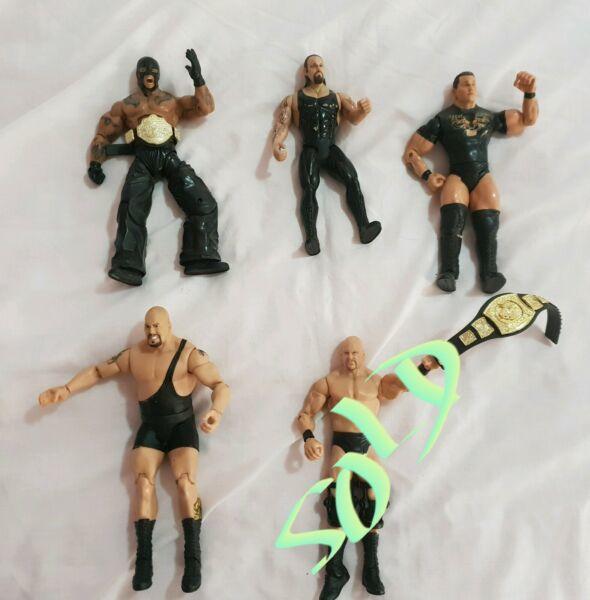 WWE figurines. Mysterio, Undertaker, Randy Orton & Big Show. 20cm high. Different moveable parts: head, legs, arms, knees, hands, feet and elbows. $15 each. Woodridge ...