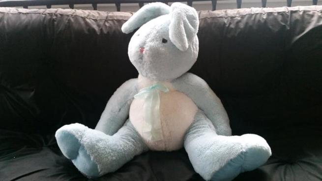 Blue bunny about 80cm in height and 60cm sitting.30cm in width