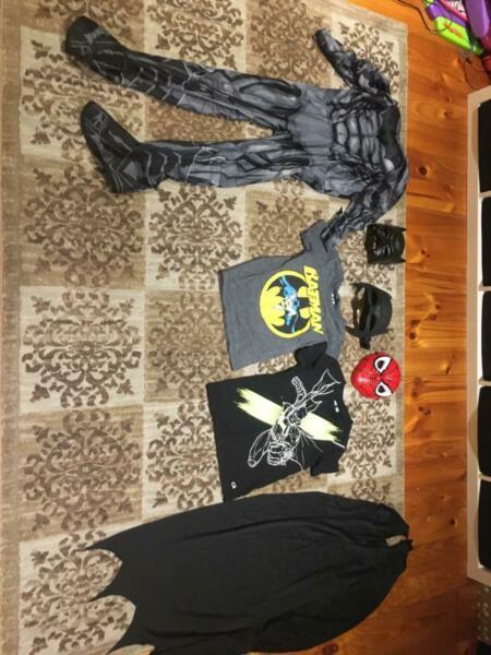2 masks, 2 tee shirts (size 6), cape and full outfit