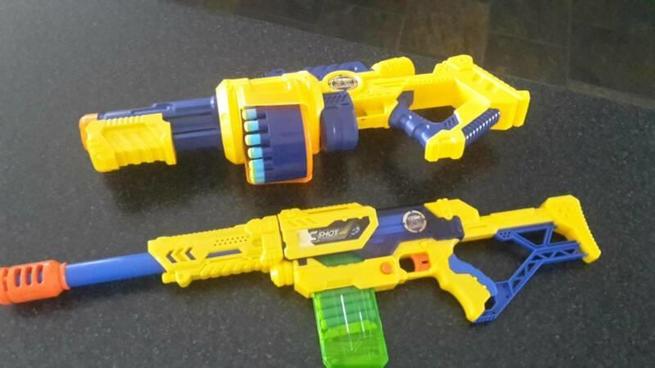 2 x nurf bullet blasters, X-Shot brand. Good condition with 30 bullets. The longer one is 75cm long. Cash and collect from Wynn Vale.