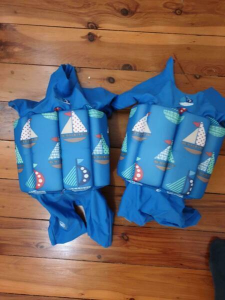 Two x splash about floatsuit. Shortsleeved, with shorts swimsuit with removable floaties to change the amount of flotation support provided. EUC. smoke free home. Size 1