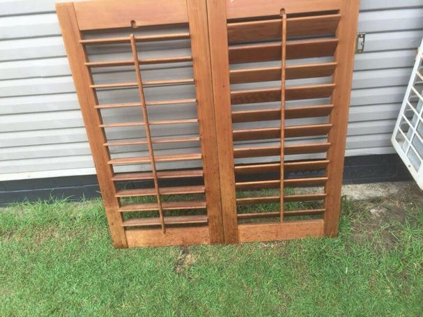 Cedar shutters some might need restraining 480x990 have 8 @ $20 each they are hinged together in pairs at the moment can make singles out of them or $140 the lot