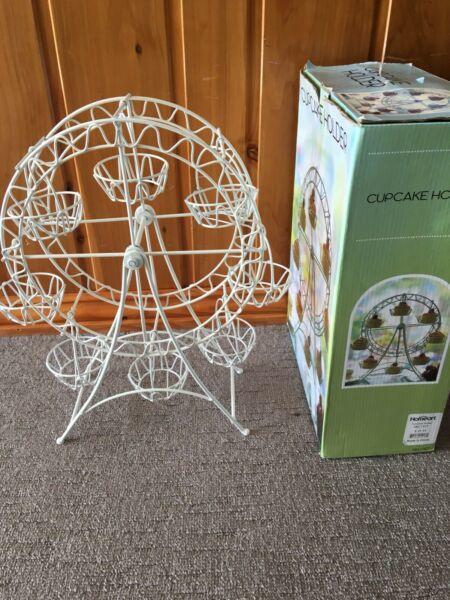 Ferris wheel style. Holds 8 cupcakes. New. Can deliver to some areas.