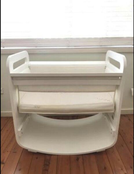 Can fold legs away so you are able to rock the crib or out to have it still.