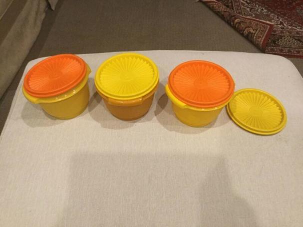3 X TUPPERWARE RETRO BOWLS WITH 4 X LIDS 0