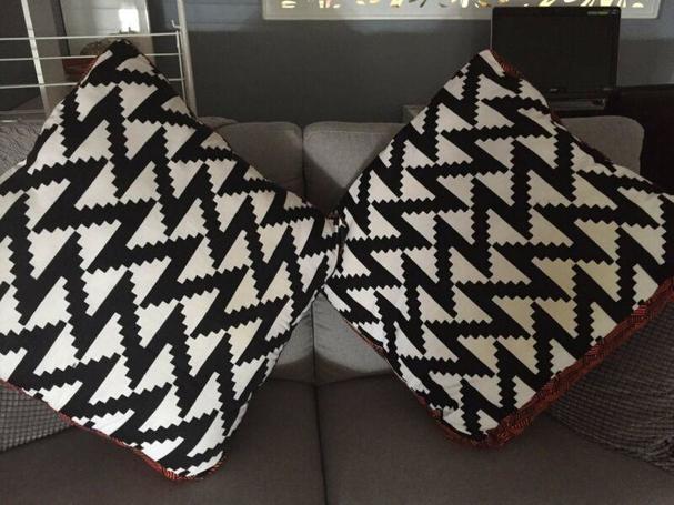 These 2 cushions are practically new used them for a couple of weeks can be used showing either side