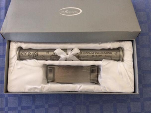 New, unused Baptism/Christening certificate holder. Still in original plastic wrap.