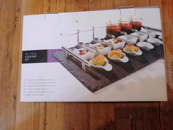 25 piece serving set for classy dinner. You can serve sauces and snacks and become an amazing host to your guests.