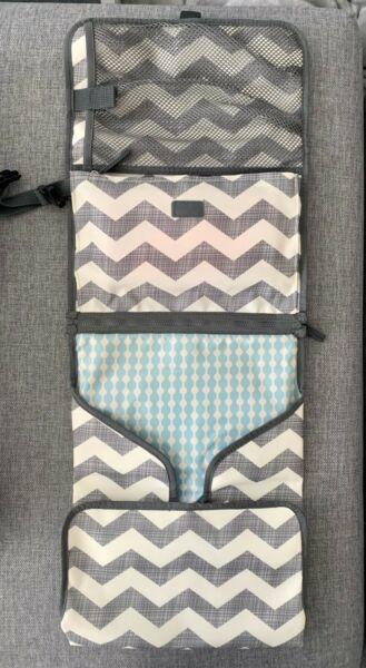 Skip Hop - Chevron Pronto Changing Station. Like new. Used twice. Can clip onto your wrist or onto the pram. $59.95 new.