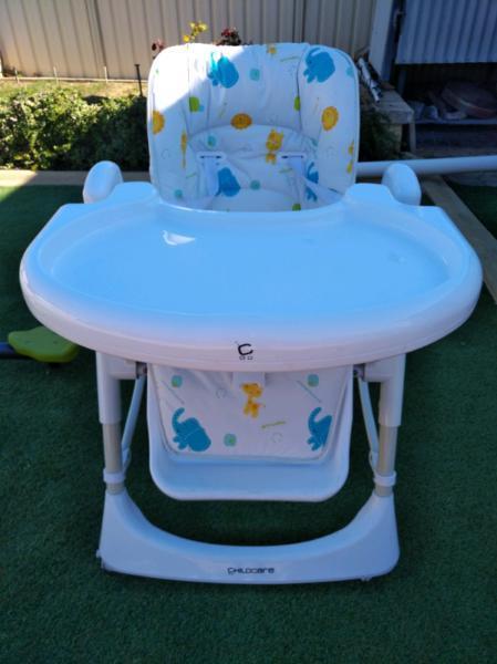 Steelcraft highchair in great condition. It's clean, has a cup holder and storage basket for bibs, wipes etc. Can be high or low chair.