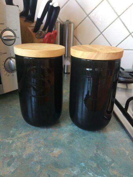 Salt & Pepper, Studio Collection, Black ceramic Jars with wooden lid. Tea & Sugar.