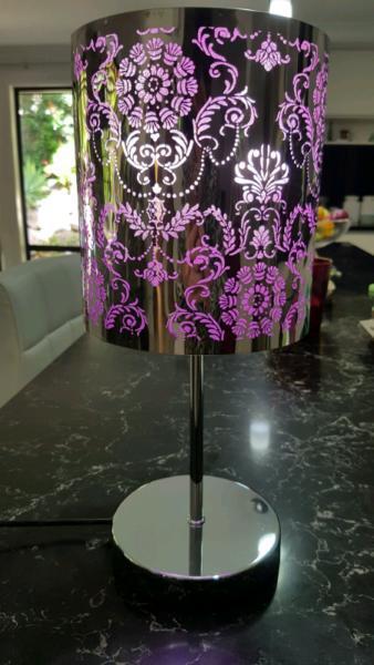 Standard lamp. Comes with fancy globe that changes colours blue green pink etc . Good condition. Smear if paint on base as per photo