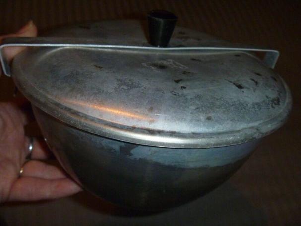 A great aluminium pudding steamer, great for that xmas pudding. excellent used condition with dimension of 18 cm across, and depth of 9cm. Teflon coating inside. Comes