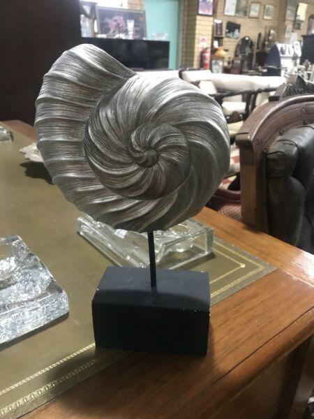 Decorative silver shell on stand. 3 in stock. $20 each.