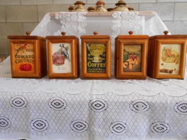 5 SOLID PINE KITCHEN CADDYS DEPICTING ARNOTTS BISCUITS AND PRODUCTS