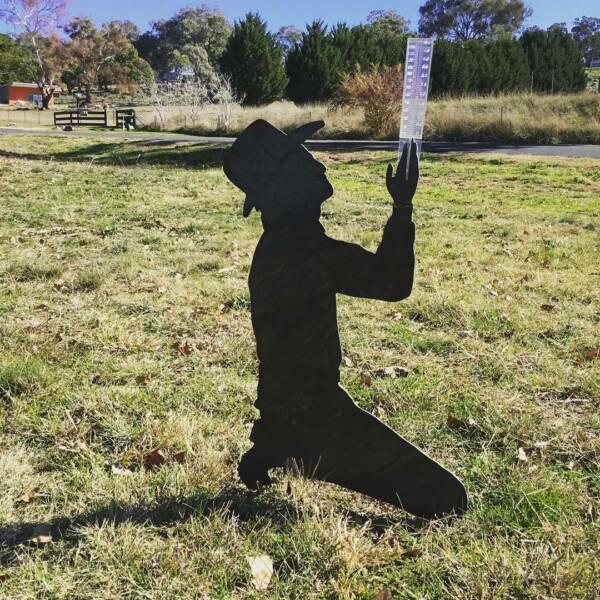 "Praying Jack" - Comes with a welded stake base for easy ground placement Dimensions- 820h x 440w. Made from 4mm steel .