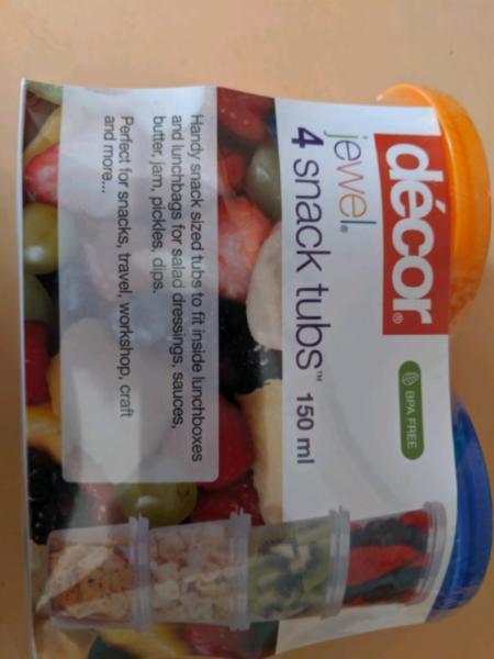 I have a total of 4X5 Jewel snack tubs. 150ml so total = 24. I don't need this many. Unopened and new